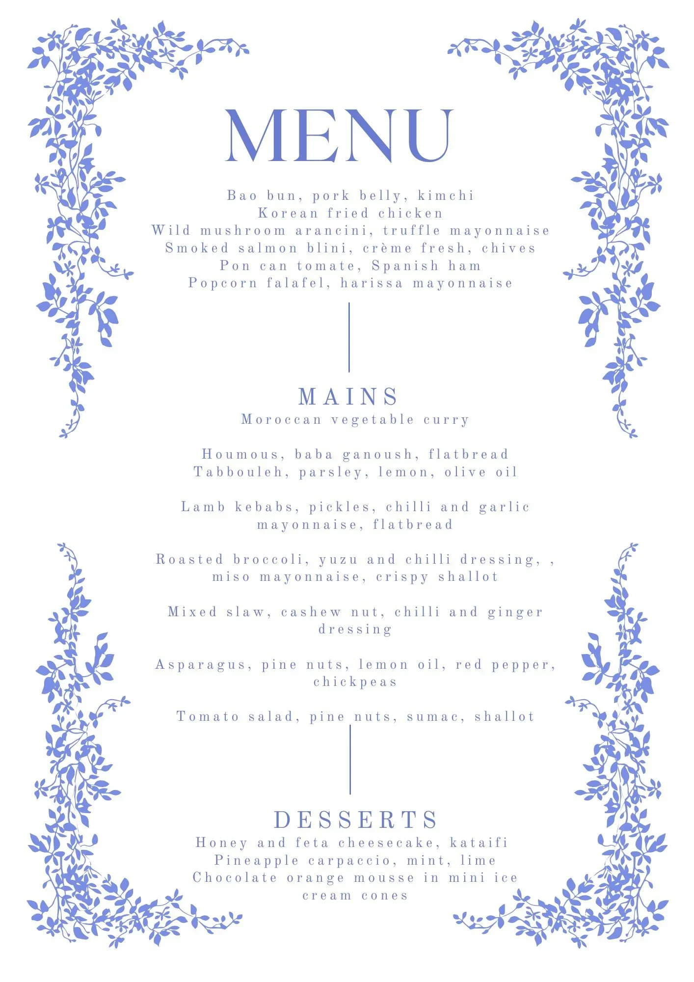 We create bespoke wedding menus using high-quality, seasonal ingredients, delivering a relaxed yet refined dining experience tailored to your day. From elegant canapés to relaxed sharing feasts or formal wedding breakfasts, I’ll work with you to create a menu that reflects your style and your celebration.